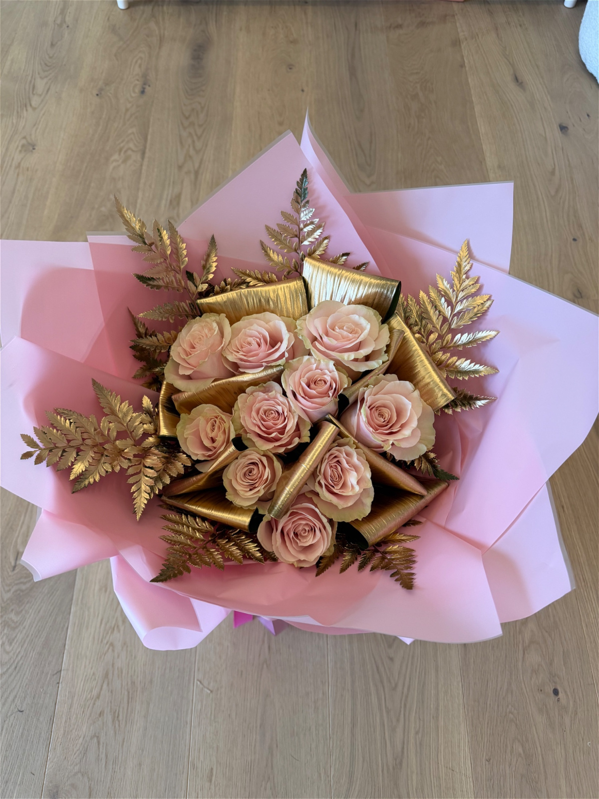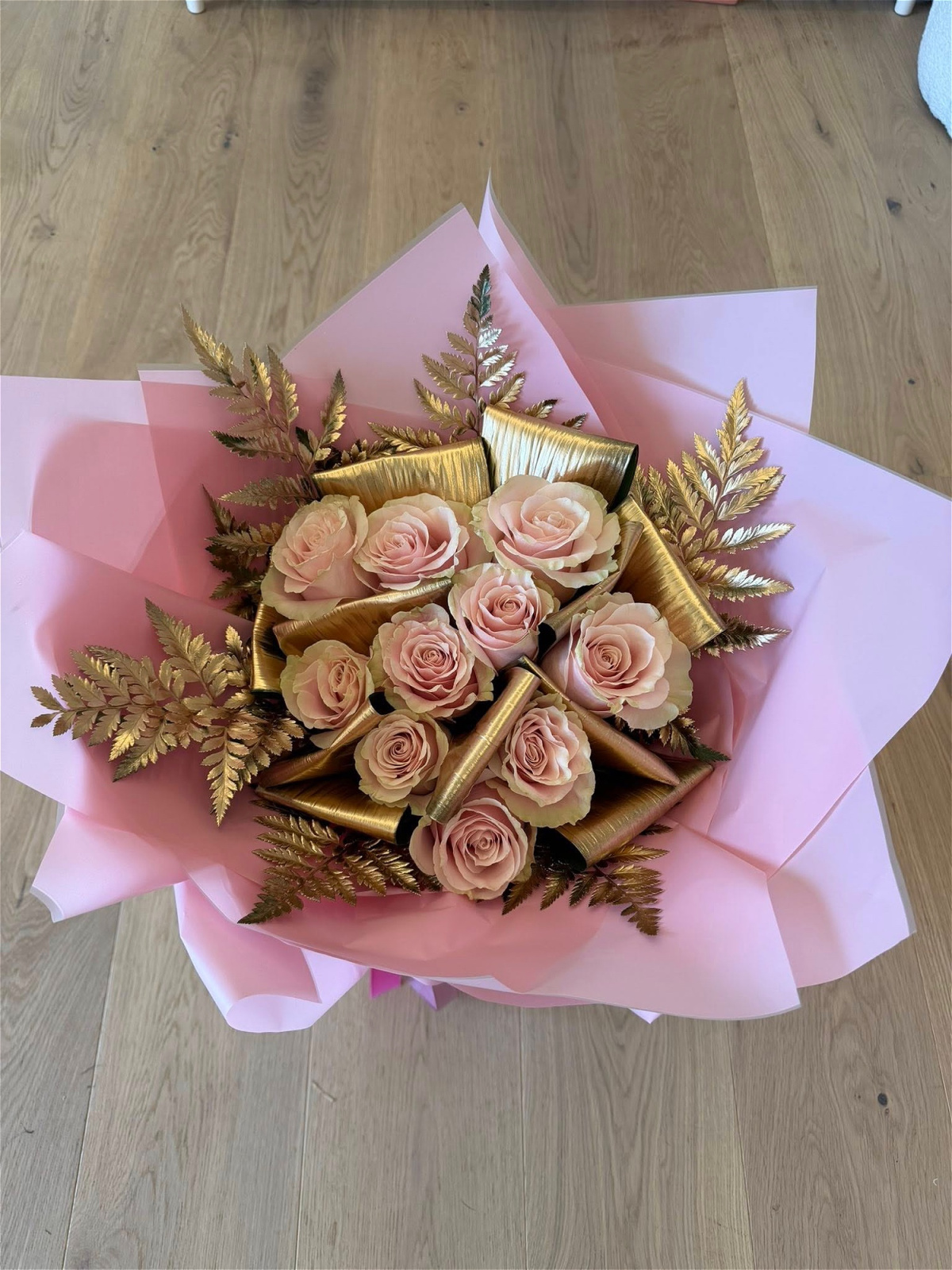 Choose between pink, red and white roses all finished with gold detailing and wrapped to suit your preference.